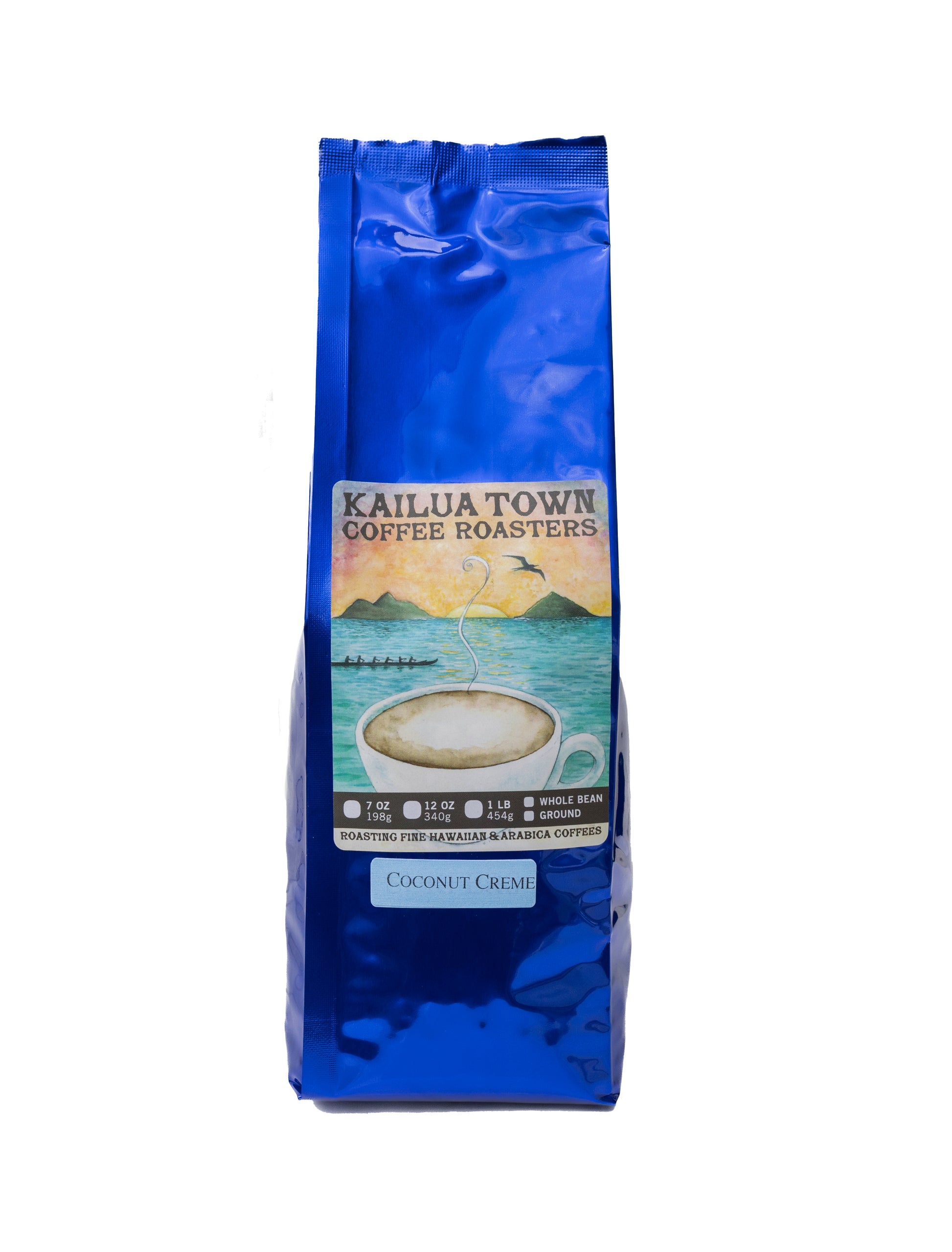 Throughout the holiday season we offer our special Coconut Creme flavored coffee. Fresh medium roast coffee with the taste of Hawaii. This special comes ground (as opposed to our typically whole bean bags) to protect your grinder from any residue from the coconut flavoring!